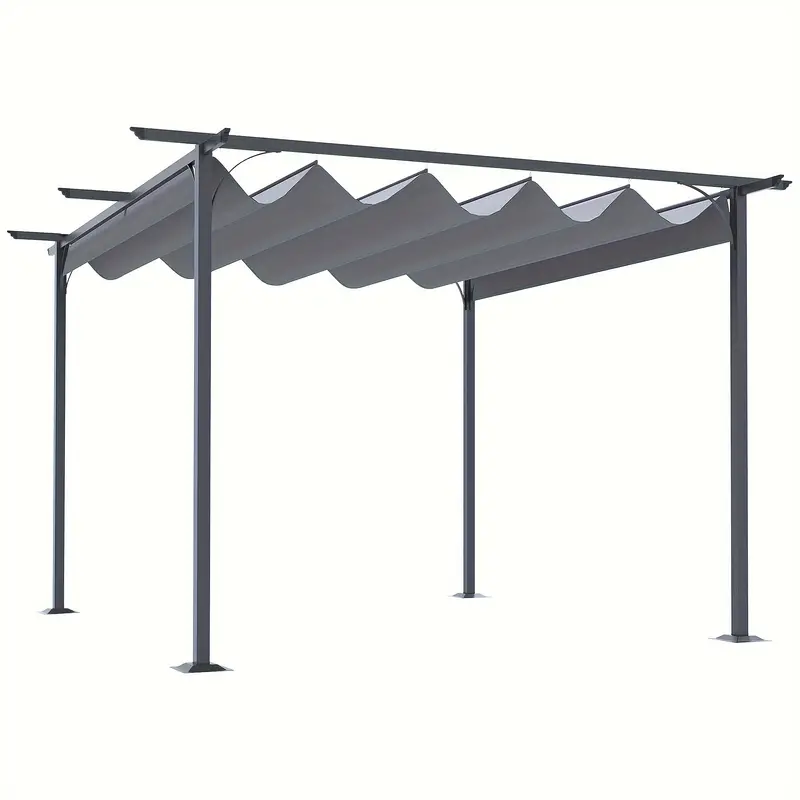 11.5' x 11.5' Pérgola retráctil para exteriores, Toldo de metal para patio, Refugio para fiestas en el porche, Jardín, Gazebo para parrilla