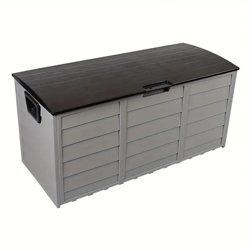 Caja de almacenamiento de plástico para jardín al aire libre de 75 galones (260 litros) para herramientas, cojines, juguetes, con asiento bloqueable