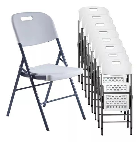 Set 10 Sillas Plegables De Plástico Jardin Fiestas Eventos Color Blanco Set 10 Sillas De Uso Rudo
