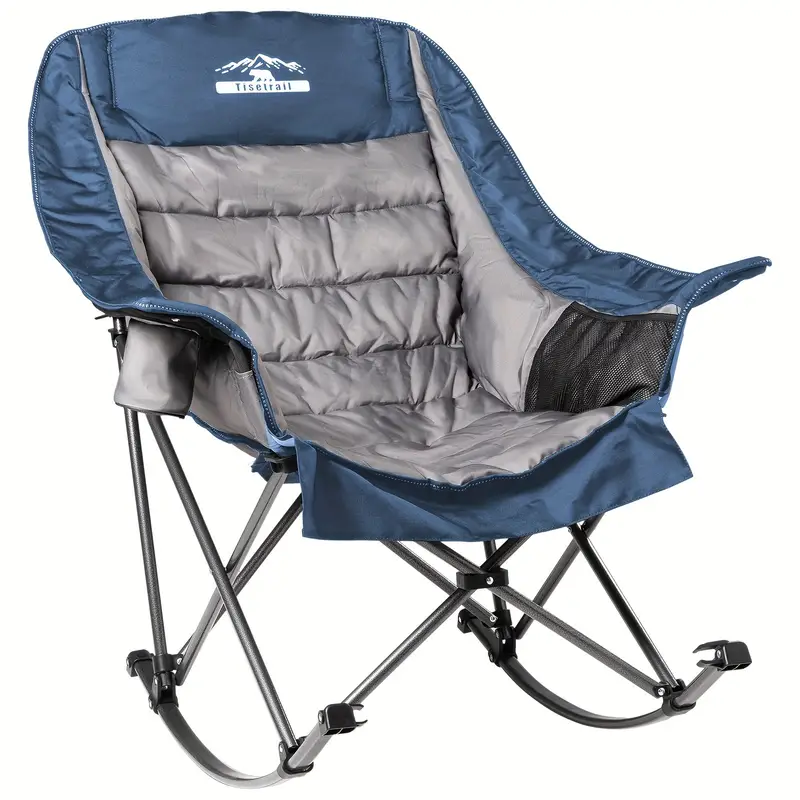 Silla de camping mecedora de gran tamaño Tisetrail, sillas de camping totalmente acolchadas para adultos con bolsillo lateral y portavasos, capacidad de 500 libras para trabajo pesado, azul y gris