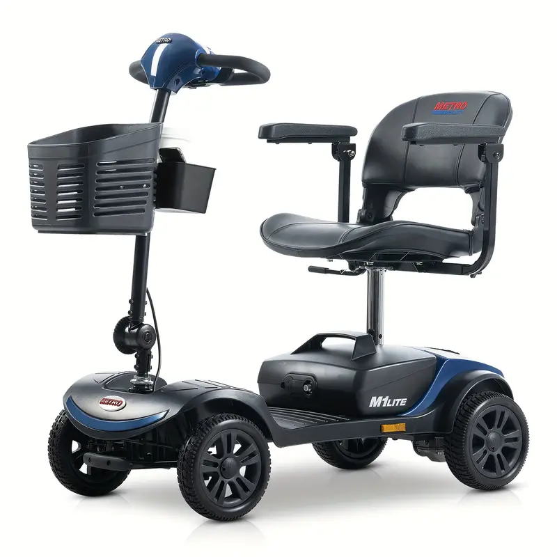 Monopatines de movilidad de 4 ruedas para adultos con cargador y cesta incluidos, patinete de movilidad eléctrica de 265 libras de peso máximo para viajes.