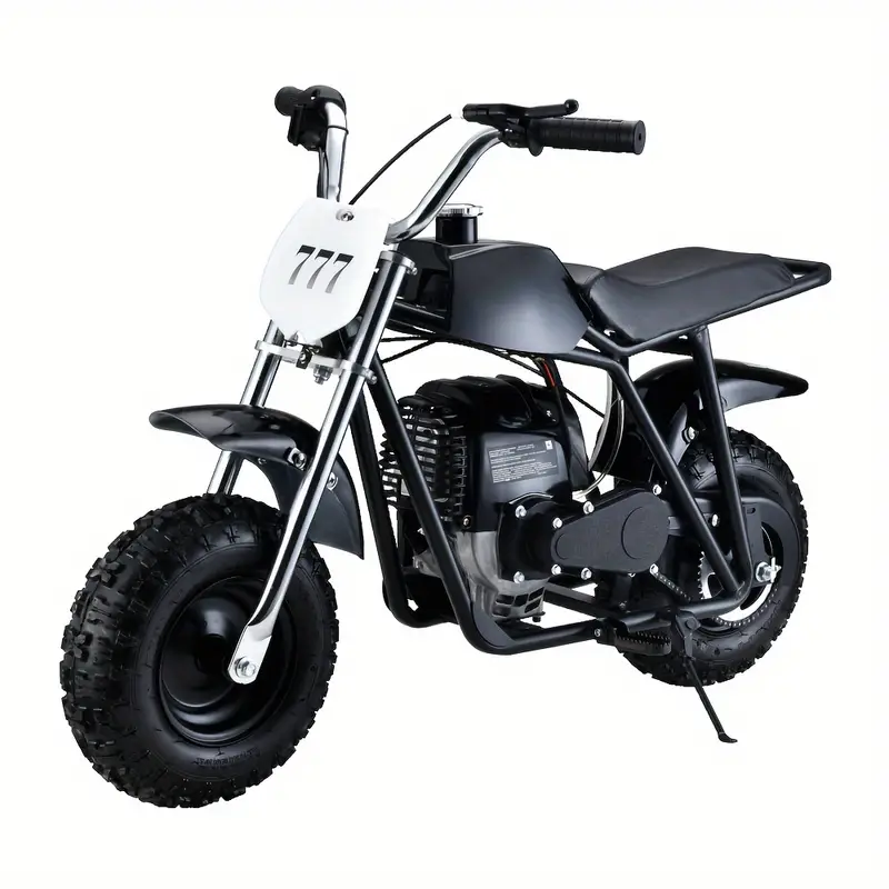 Motocicleta a gasolina 40CC, monocilíndrica de 4 tiempos, mini moto de velocidad máxima 20 mph, con tanque de 60.87 oz, frenos de disco, moto de cross todoterreno para adultos aprobada por la EPA, capacidad máxima 143 libras, negra.