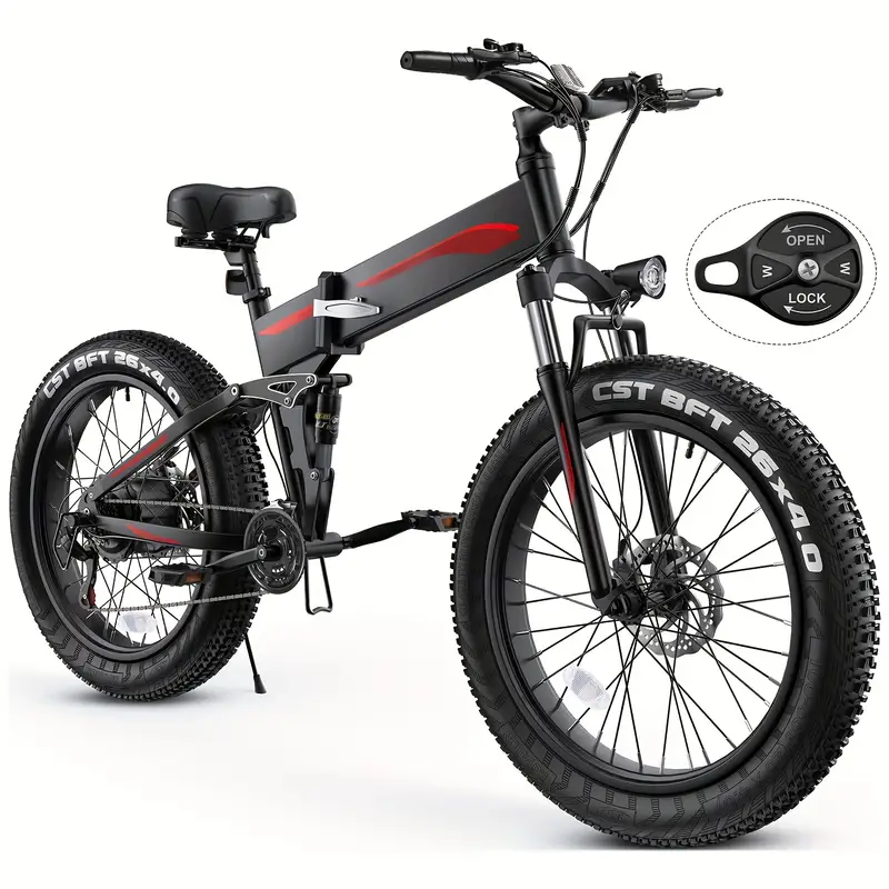 Bicicleta eléctrica plegable de 26''X4.0 para adultos, (motor de 750 W de pico) Bicicleta eléctrica plegable con batería de 48 V 10 Ah, hasta 60 millas, 21 velocidades profesionales, amortiguador, bicicleta eléctrica de 20 MPH