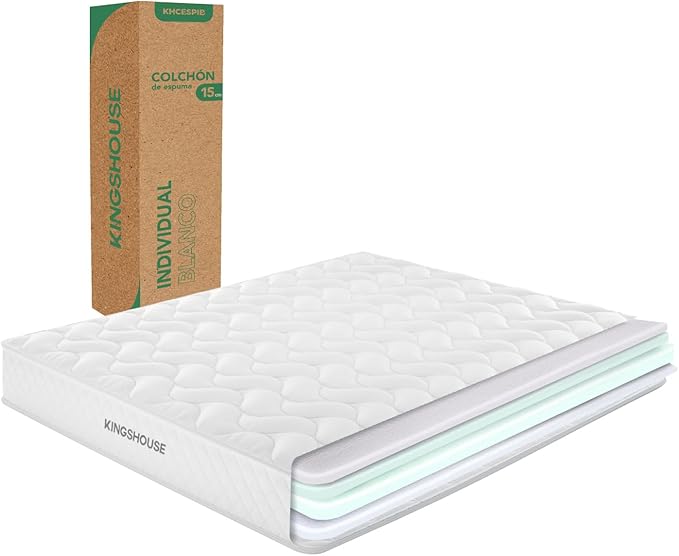 Kingshouse | Colchón en Caja Individual Color Gris - Espuma de Alta Densidad - (LAxANxAL) 190x100x15 cm - Antiácaros e Hipoalergénico - Adaptable y Suave - Firmeza Justa