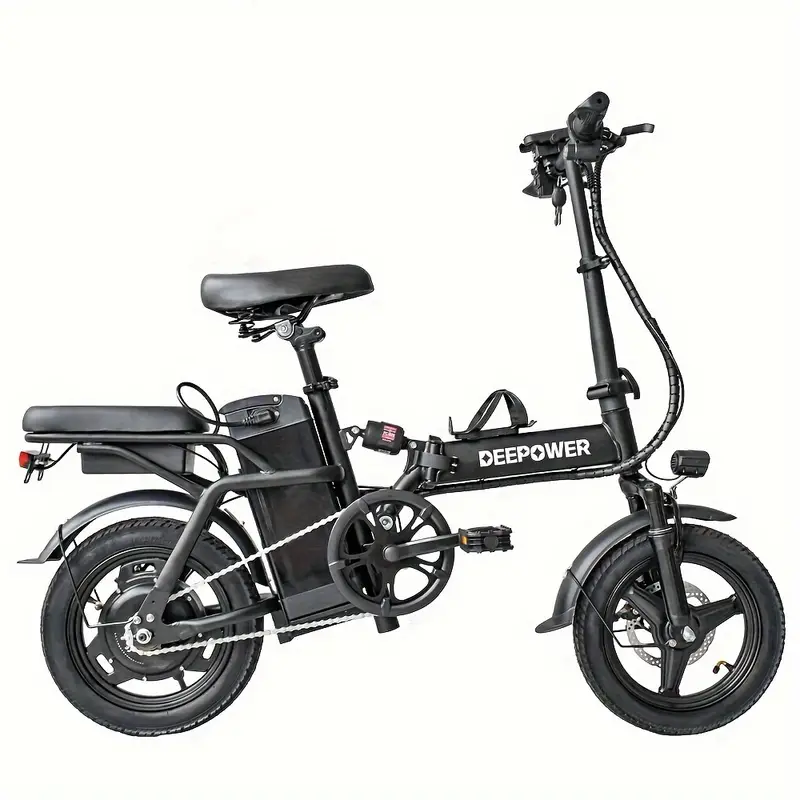 Bicicleta eléctrica plegable para adultos: motor de 400 W, velocidad máxima de 20 MPH, neumáticos de 14", batería extraíble de 48 V 10 AH, absorción de impactos múltiples, con intermitentes izquierdo y derecho, portabotellas y cesta