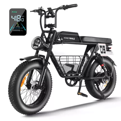 Honey Whale K7 Bicicleta Eléctrica para Adultos, Moto Bicicleta de Montaña de 7 Velocidades, Potencia del Motor 1080 W, Velocidad Máxima 48KM/H, Batería (48V, 15AH), Autonomía 40-45KM