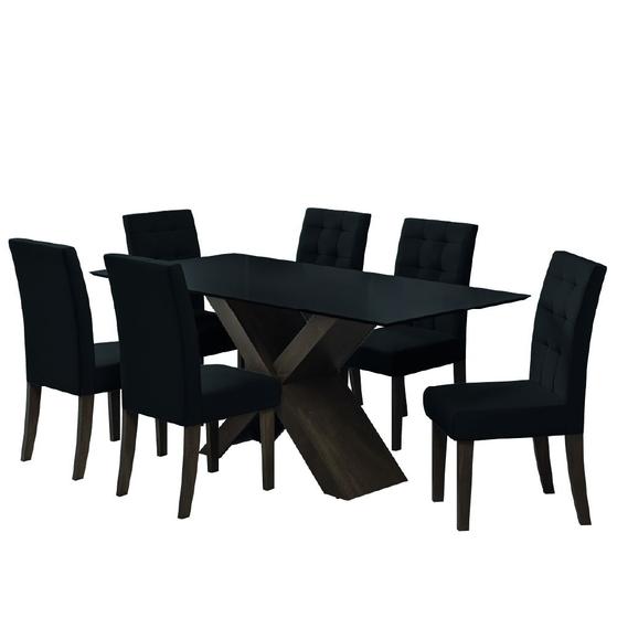 Conjunto de Mesa de Comedor Dubai 1,80m MDF con 6 Sillas Marrón/Negro - Movale