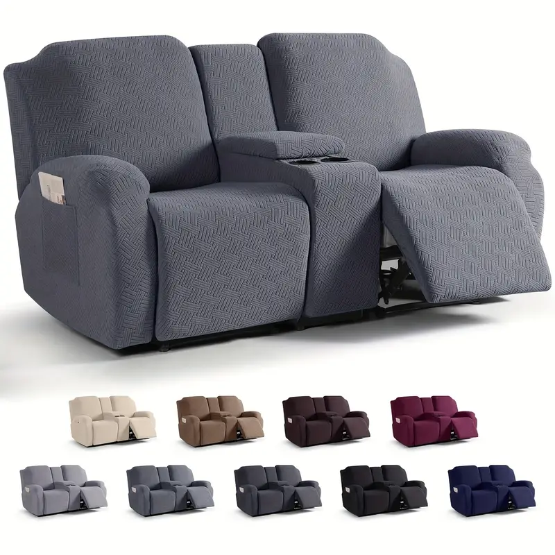 Juego clásico de fundas para sillón reclinable de consola central de 8 piezas: poliéster elástico y spandex con cierre elástico, funda para muebles lavable a máquina de diseño de una sola pieza para sillón de masaje de teatro de 2 asientos
