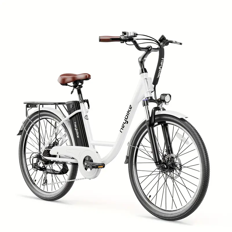 Hola, bicicleta eléctrica Cityscape de Heybike 350W (pico 500W) Bicicleta eléctrica de crucero urbano Hasta 40 millas 20 MPH Batería extraíble, 7 velocidades y doble amortiguador, bicicleta eléctrica de cercanías de 26"
