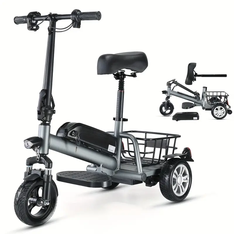 Scooter de movilidad de 4 ruedas para adultos, 50 millas de alcance, 18 mph, faro, cesta, cargador, llave remota, scooter de movilidad compacto y resistente para viajes, adultos, ancianos