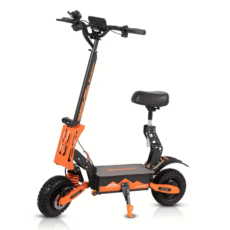 GT08 Patinete eléctrico para adultos, motor dual con potencia media de 750W, batería de 60V 27AH de alta autonomía, velocidad media de 20MPH, neumáticos todoterreno de 11 pulgadas, patinete deportivo plegable con asiento