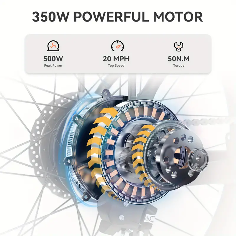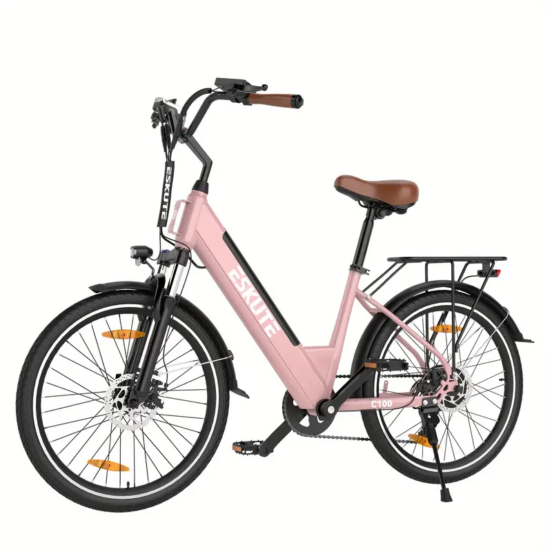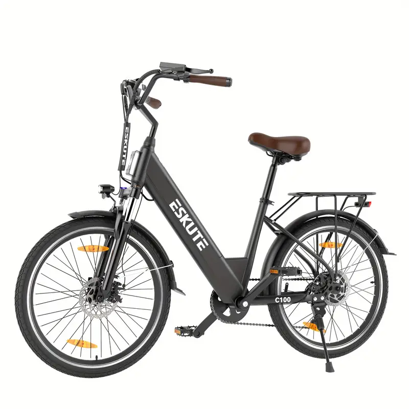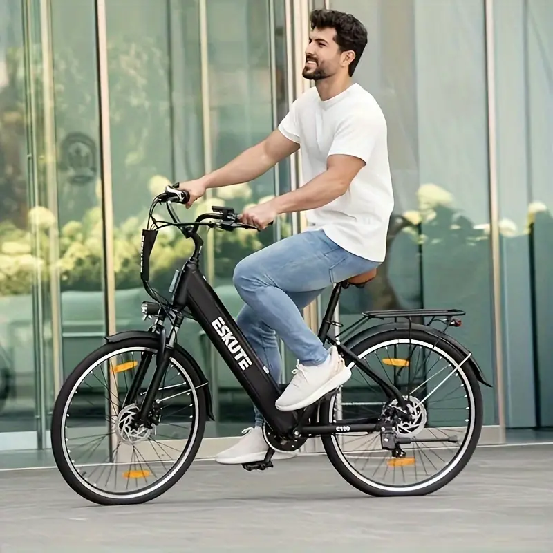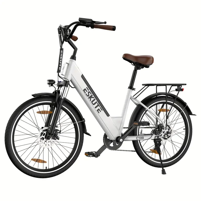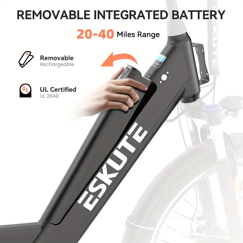 Bicicleta eléctrica ESKUTE C100, batería extraíble de 375 Wh, motor sin escobillas de 350 W, velocidad máxima de 20 MPH, bicicleta eléctrica urbana con horquilla de suspensión, bicicleta eléctrica para adultos