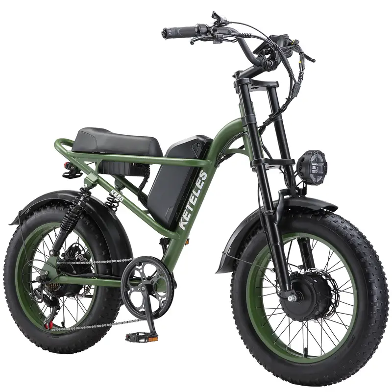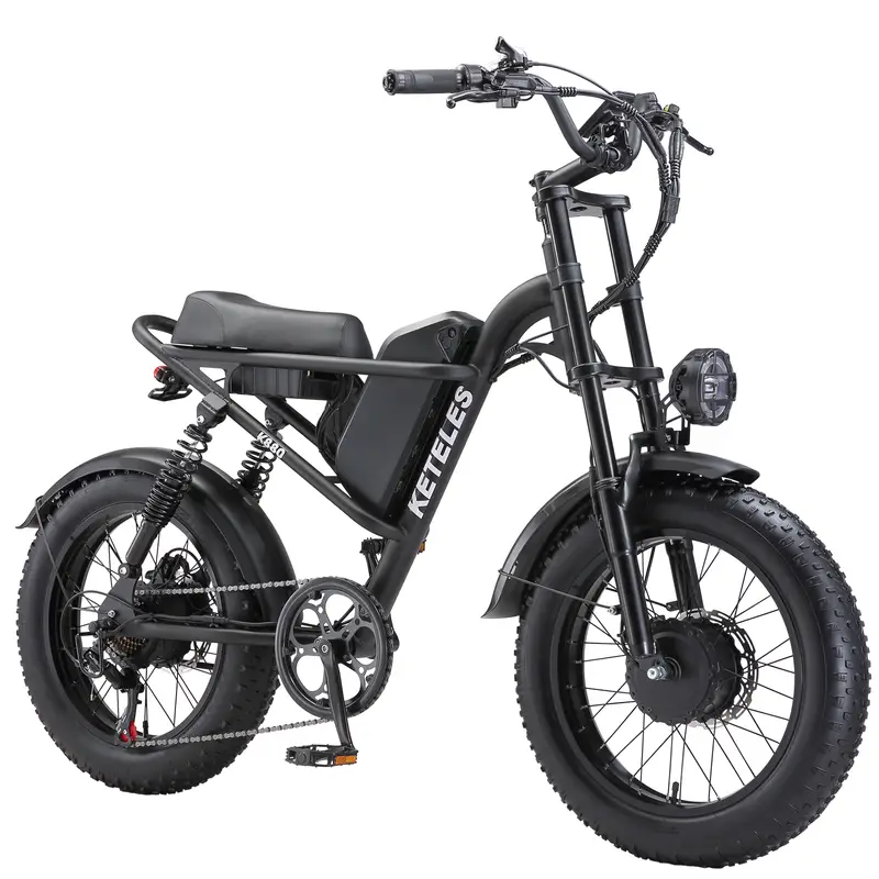 Bicicleta eléctrica KETELES de 20" x 4.0 con neumáticos gruesos - Motor dual sin escobillas de 170NM, batería removible de 48V 23Ah 1104WH