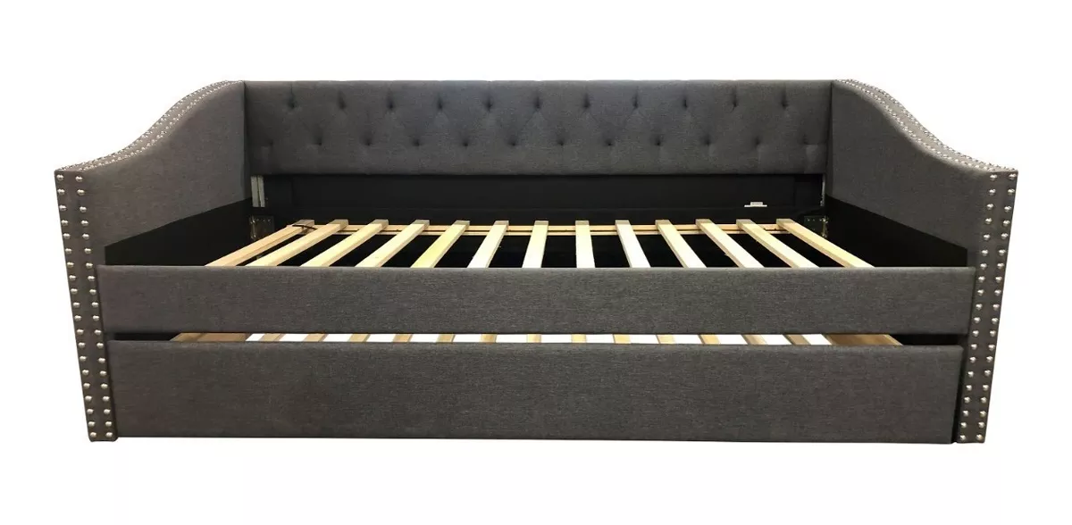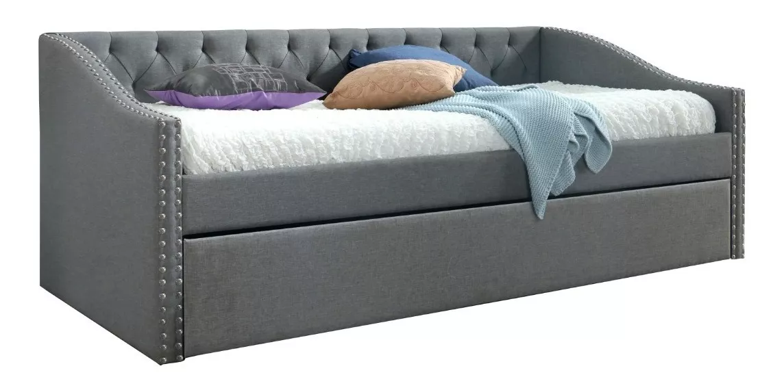 Cama Canguro Individual, Daybed Color Gris Con Estoperoles