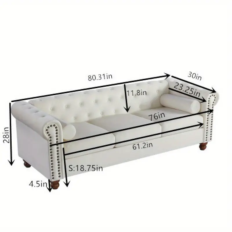 Clásico sofá tapizado de sala de estar tradicional con terciopelo/sofá Chesterfield capitoné, blanco grande