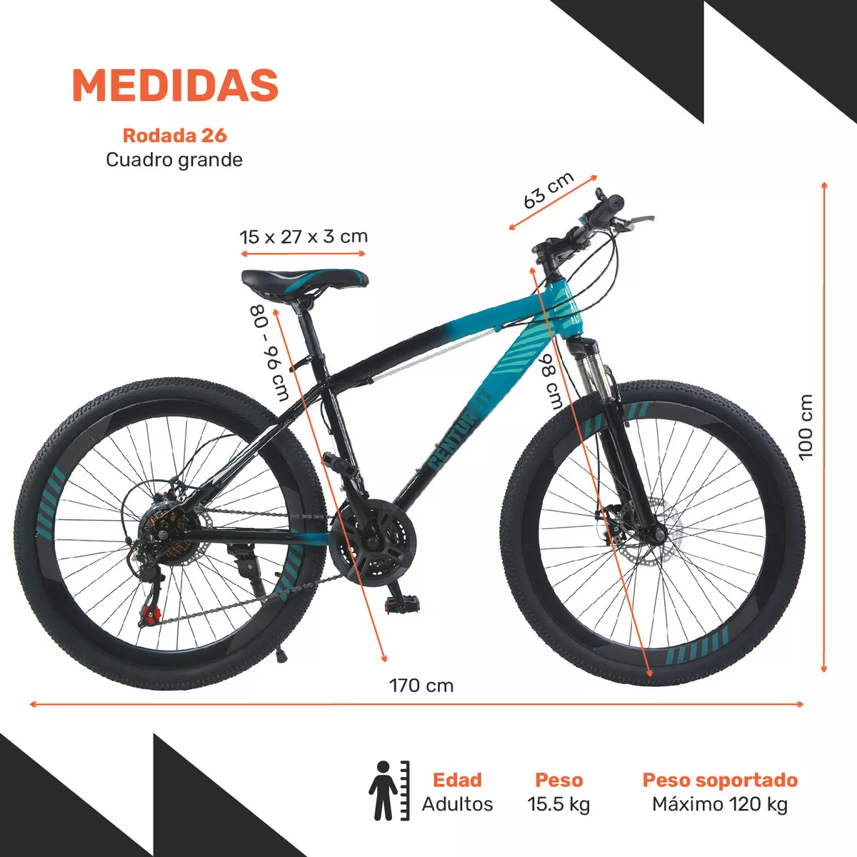 • Dimensiones del Asiento: 15 x 27 x 3 cm