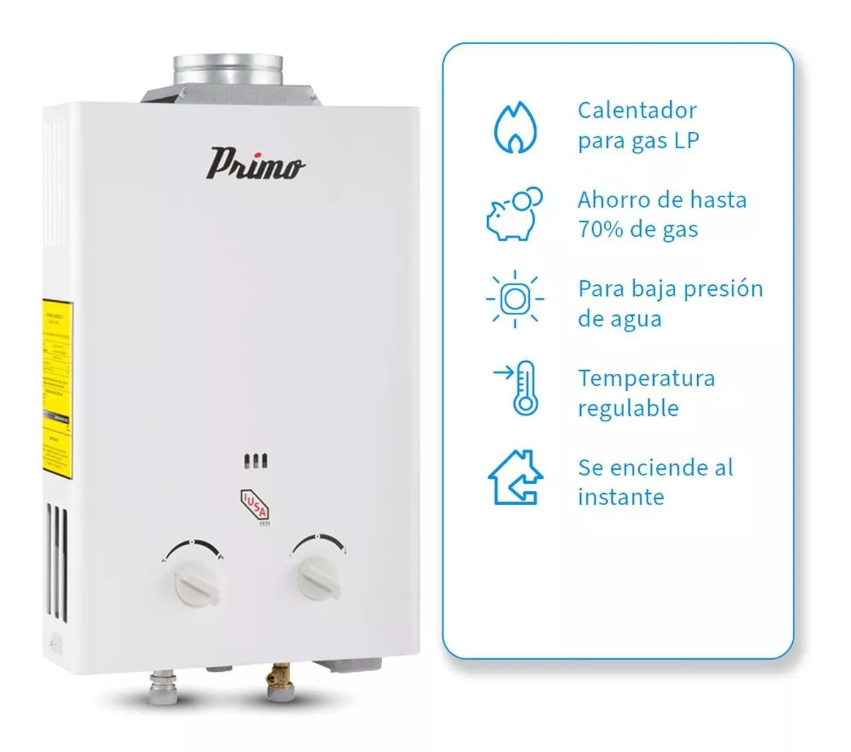 Contenido del paquete: 1 Calentador instantáneo Primo 6 l para gas L.P.