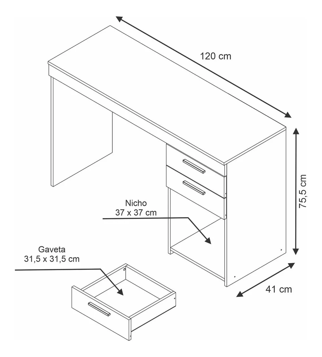 Escritorio Notável Móveis Mesa office 2 gavetas mdp de 1210mm x 760mm x 410mm blanco Mate