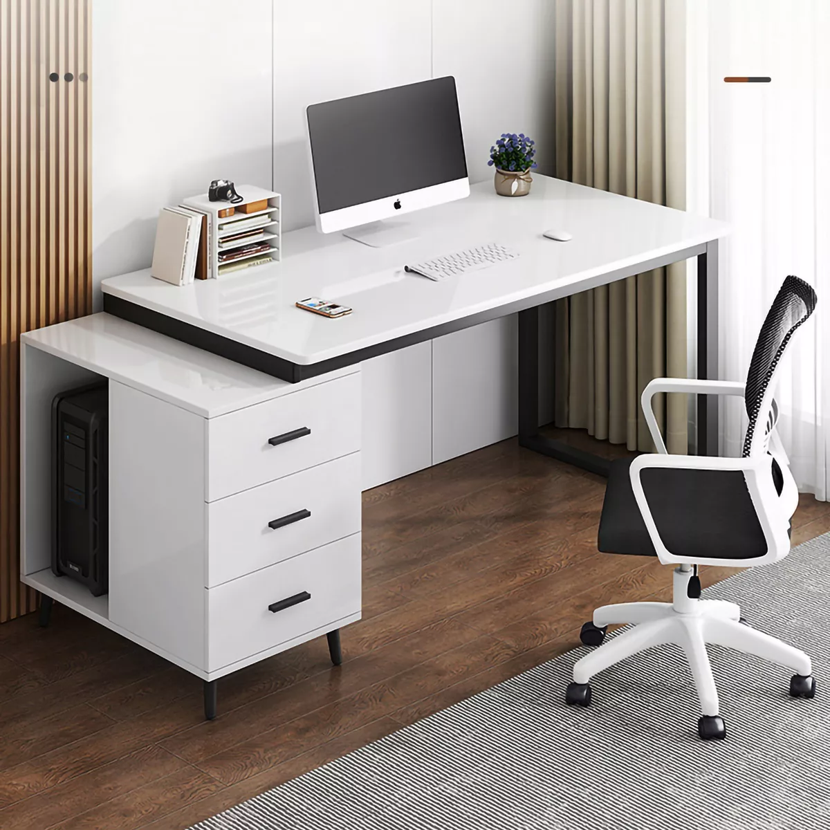 Escritorio grande y liso, puede dejar el ordenador y los libros. El amplio espacio le permite colocar los brazos libremente al utilizar esta mesa de ordenador. El gabinete de la computadora principal debajo de la mesa puede poner la unidad principal, evitar que el agua en el suelo dañe la unidad principal, y también evitar la fricción entre la unidad principal y el suelo. El marco de metal pintado soporta firmemente toda la mesa y los artículos en la mesa, puede usarlo con confianza y no se sacudirá fácilmente.