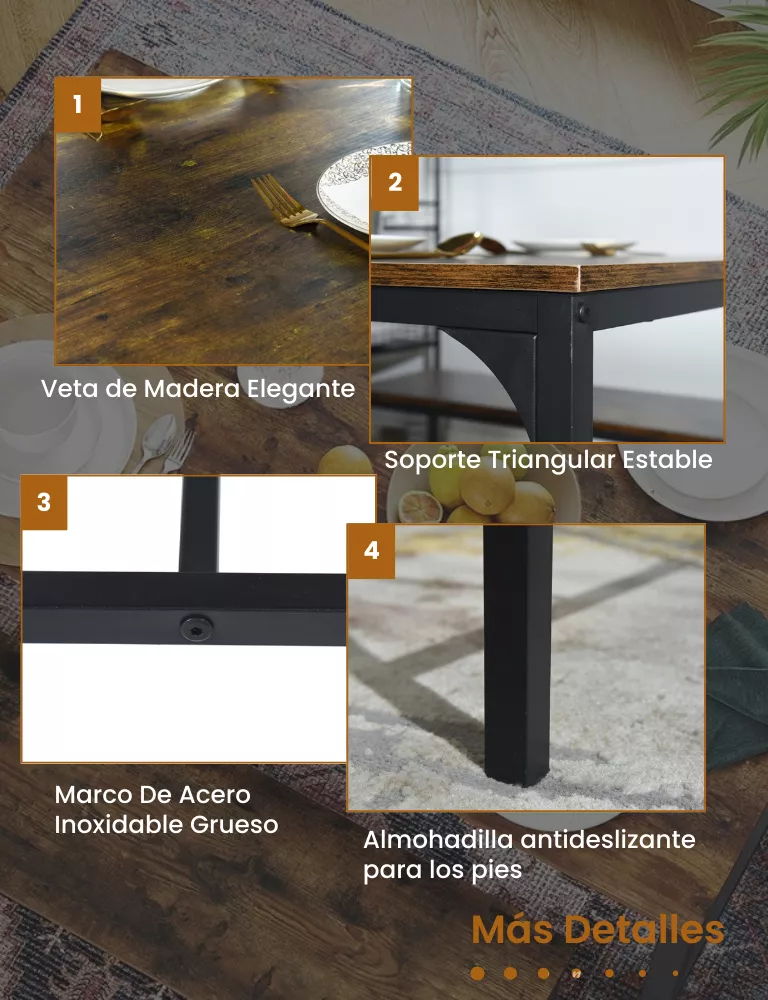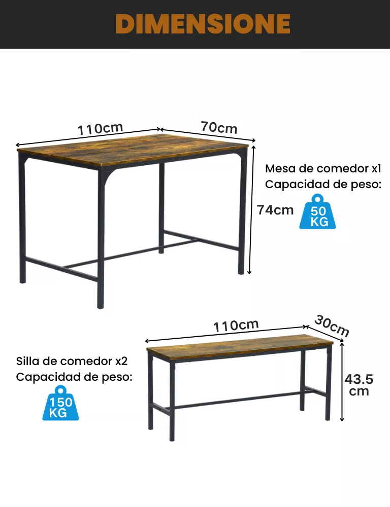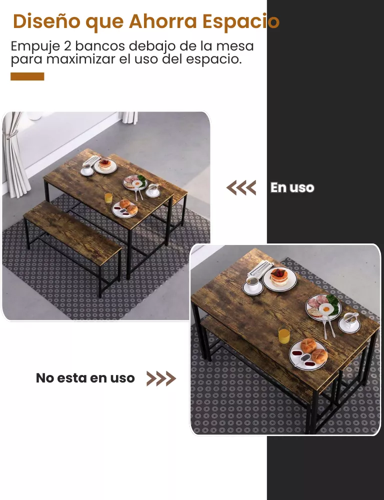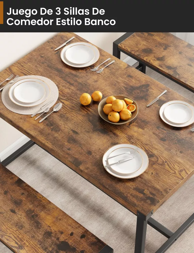 Aspecto moderno y fácil montaje: con vetas de madera en la superficie y un acabado elegante, este juego de muebles de mesa de comedor estilo banco se integra perfectamente con la decoración del hogar, agregando un toque de encanto y estilo rústico. Equipado con instrucciones sencillas para un montaje rápido y fácil etc.