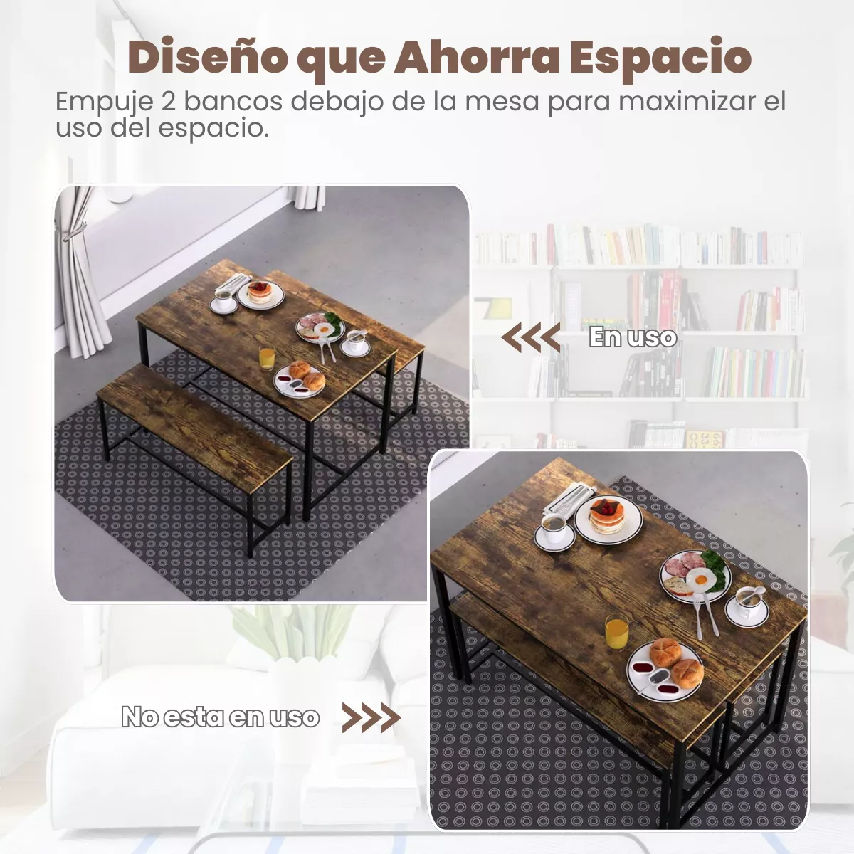 Diseño que ahorra espacio y amplias aplicaciones: los bancos se pueden colocar debajo de la mesa del comedor para ahorrar espacio cuando no están en uso, ideal para espacios pequeños, apartamentos, salas de estar, cocinas, restaurantes, pubs y cafeterías.