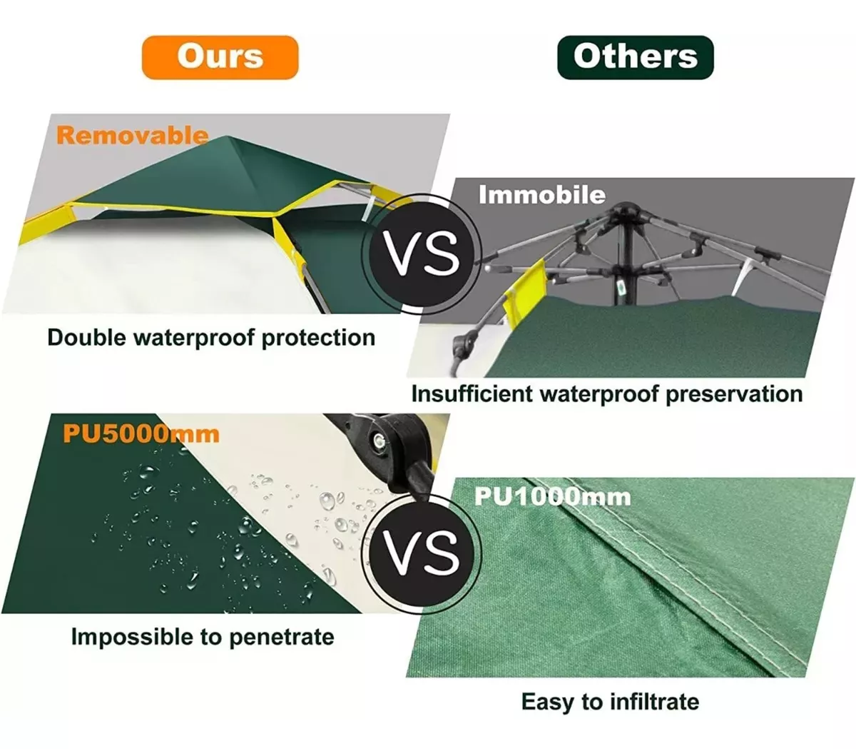 Alta Impermeabilidad: Fabricado con poliéster ignífugo 190T y tela Oxford 210D, garantizando una resistencia al agua de hasta 1500mm. ¡Mantente seco en cualquier clima!