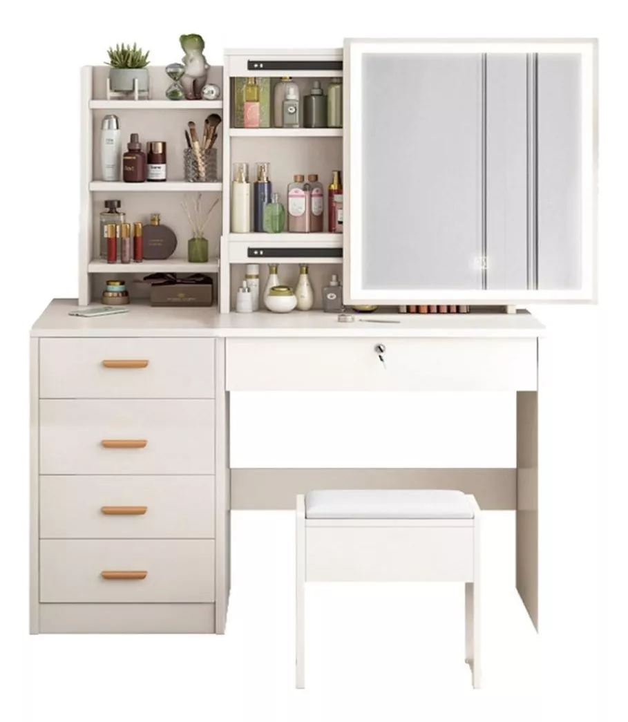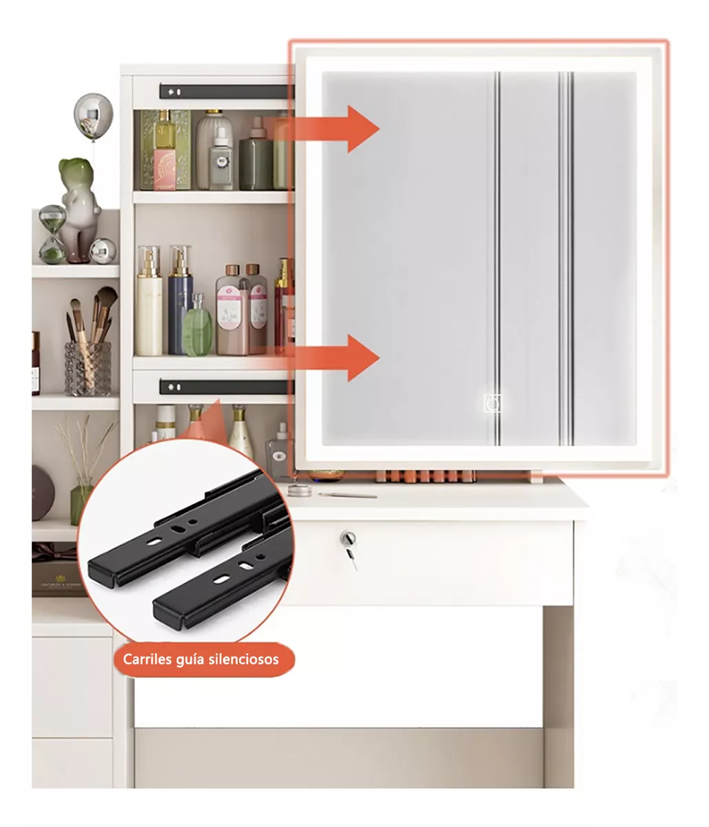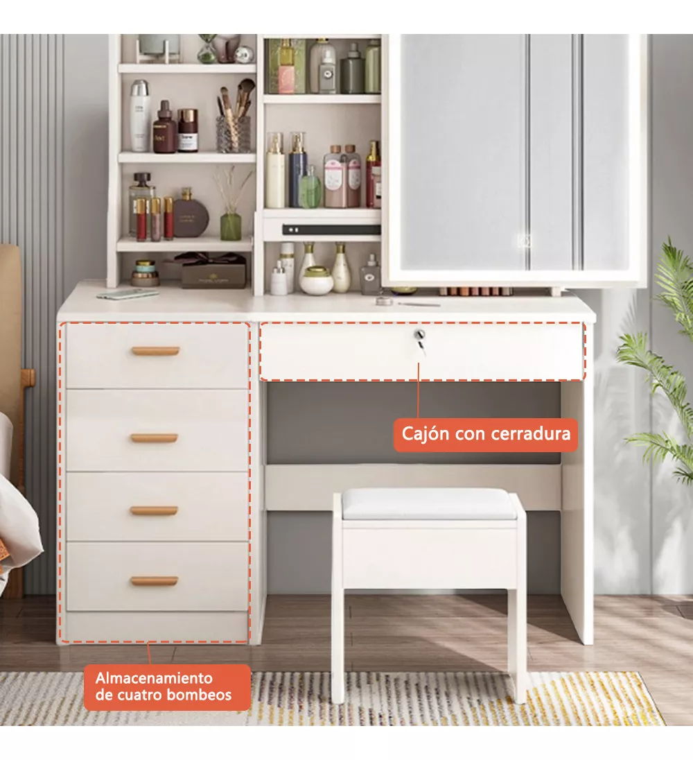 Tocador Dormitorio Con 5 Cajones Con Espejo Y Luz