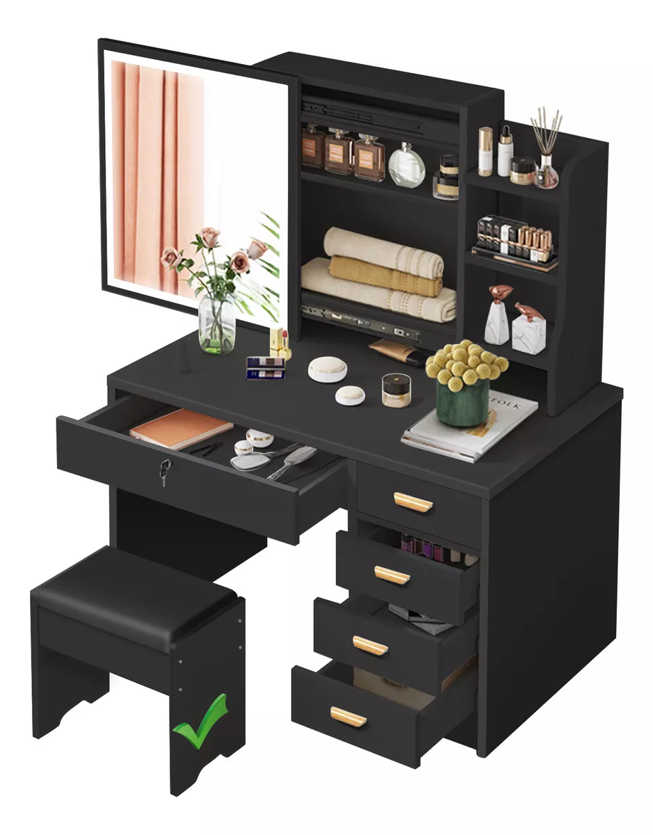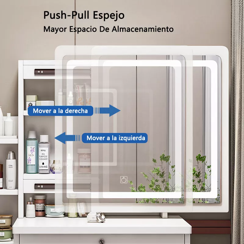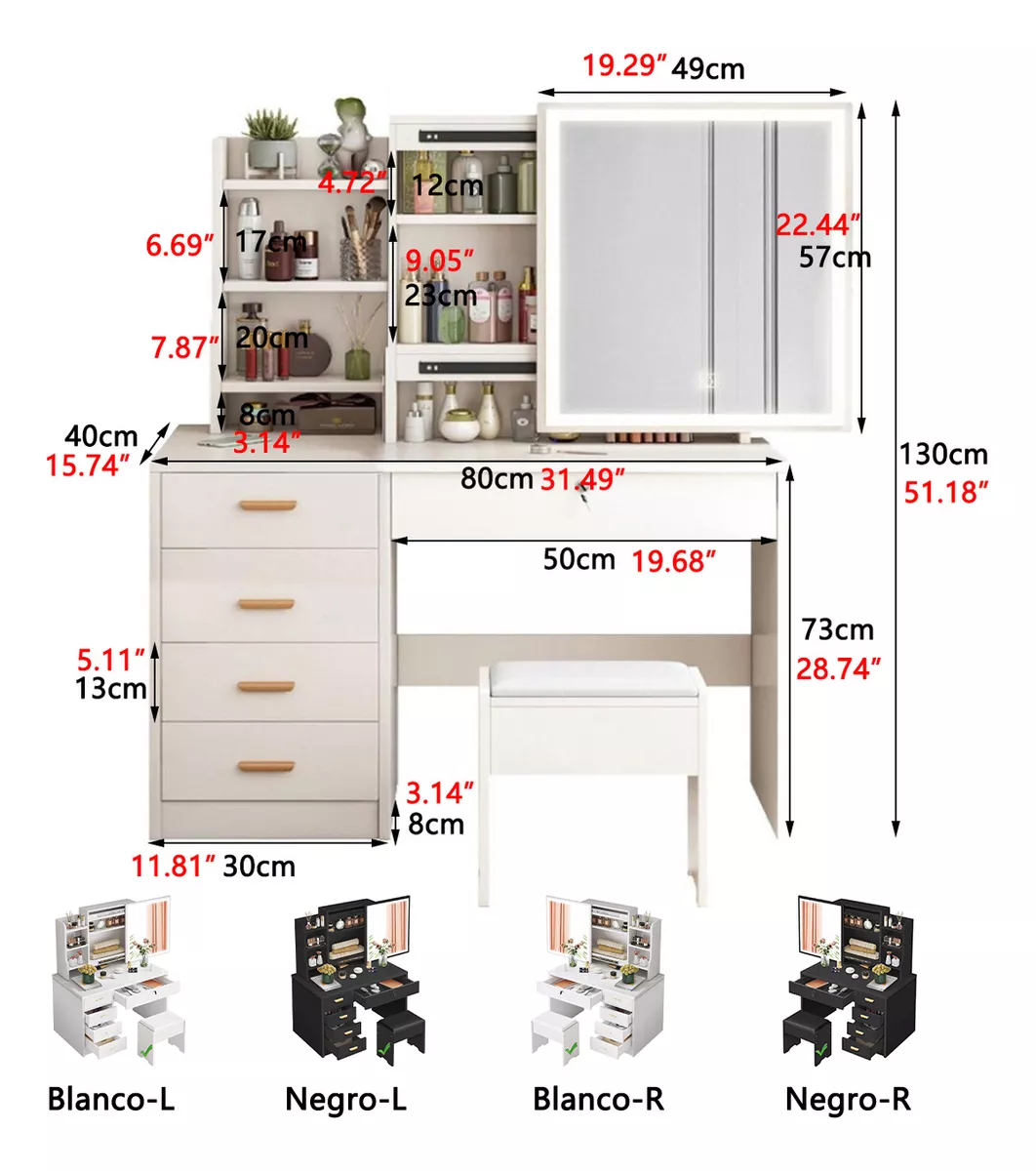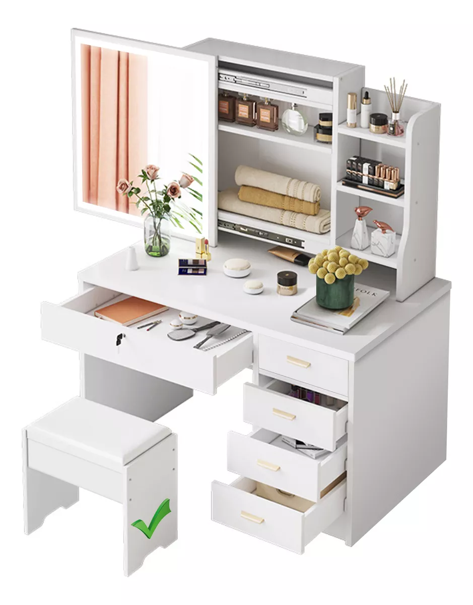 Tocador Dormitorio Con 5 Cajones Con Espejo Y Luz