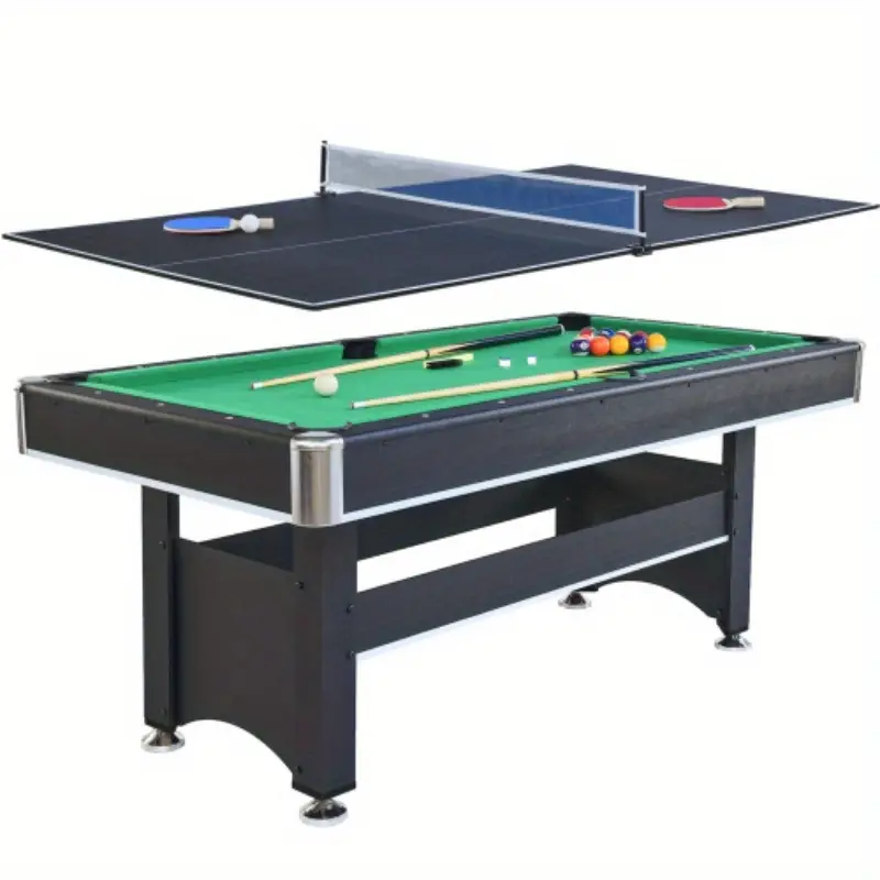 - Divertido y económico: Esta mesa combinada de billar y tenis de mesa de tamaño mediano te permite ahorrar espacio y disfrutar de dos juegos clásicos en uno. La superficie de la mesa de tenis de mesa es ligera y se instala fácilmente sobre el marco del billar, manteniendo la diversión en un ritmo competitivo y rápido. 2. Superior calidad: La Spartan está diseñada para resistir la competencia con una superficie de juego sellada con polímero y una tela de mezcla hermosa. Los cojines de goma garantizan una acción suave y rápida que durará años, garantizando una experiencia de juego de alta calidad. 3. Perfecto para todas las edades: Elimina la aburrimiento con dos juegos clásicos de habilidad. Esta mesa de billar de 6 pies es la talla ideal para niños que están creciendo y aprendiendo a jugar, mientras que los adultos disfrutarán de sus características premium, diseño elegante y funcionalidad de ahorro de espacio. Una opción versátil para toda la familia. 4. Diseño elegante: Con una superficie de juego moderna de color burgundy y una carcasa de melamina negra, la Spartan crea un aspecto impresionante que sorprenderá a tus amigos y familiares. El estilo moderno se complementa con la tapa de tenis de mesa negra y removible de la Bandit, añadiendo un toque de elegancia a cualquier espacio. 5. Convenientes dimensiones: Las dimensiones del producto son de 72 pulgadas de largo x 38 pulgadas de ancho x 31 pulgadas de alto, con una superficie de juego de billar de 72 pulgadas de largo x 37,8 pulgadas de ancho.