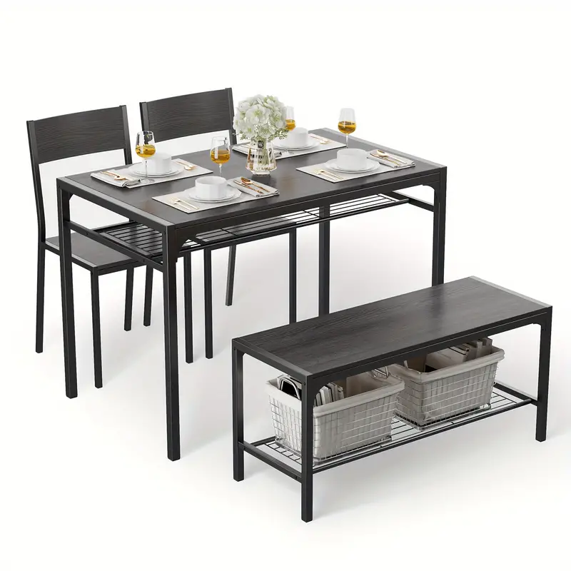 Mesa de cocina y 2 sillas para 4 con banco, juego de mesa de comedor de 4 piezas para espacio pequeño, apartamento