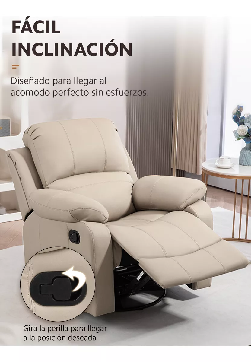 Dale un toque sofisticado a tu hogar con nuestro sillón reclinable de cuero PU. Este material innovador no solo es elegante, sino también resistente al agua y a los arañazos, facilitando su mantenimiento. Su diseño moderno y sencillo se integra perfectamente con cualquier decoración, creando un ambiente impecable en tu sala de estar.
