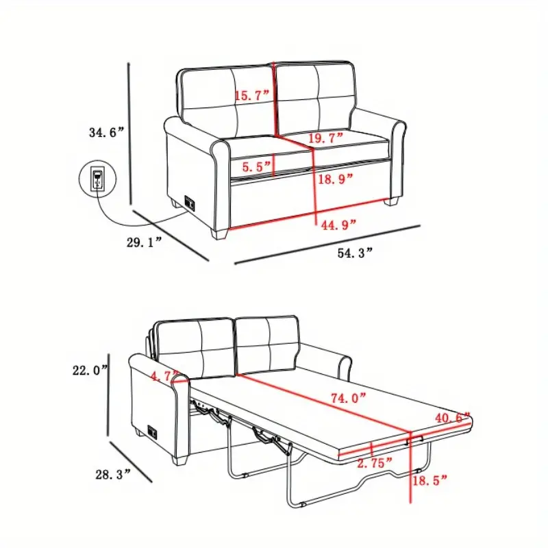 Sofá-s21 cama elegante con colchón de tela, pieza convertible que ahorra espacio.