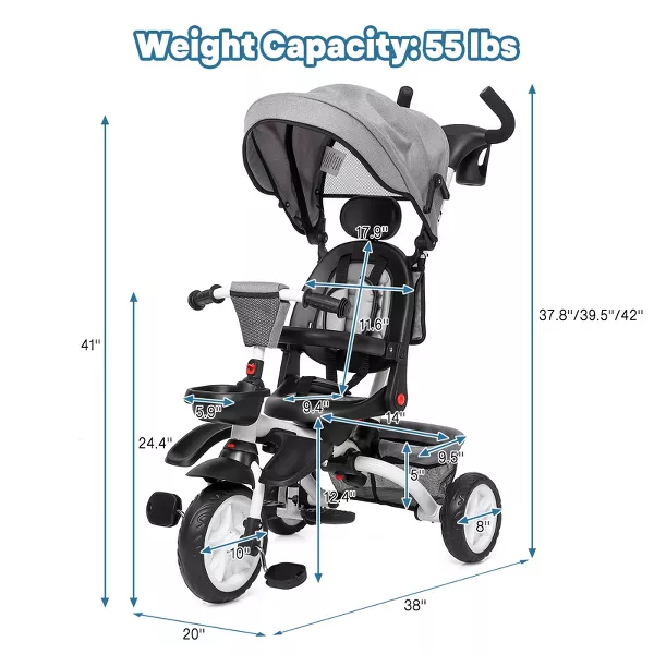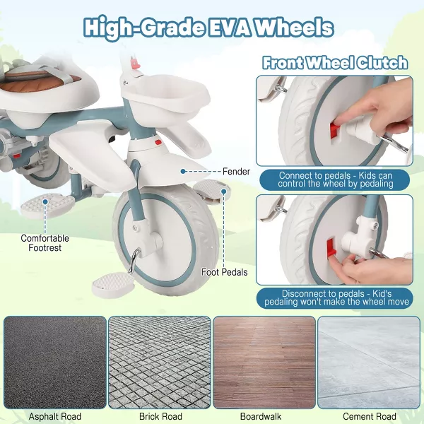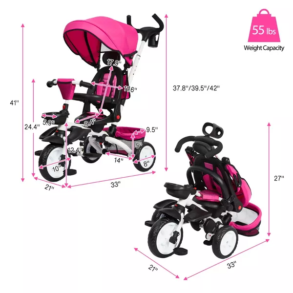 【7-In-1 Multifunctional Tricycle, Grow with Your Toddlers】: Babevy tricycle can be used as a toddler tricycle, steering tricycle, learn to ride trike, stand alone trike, or classic trike to suit the needs of baby at different growth stages. The different form of our trike is perfect for kids from 1 to 5 years old. Weight capacity: 55 lbs.