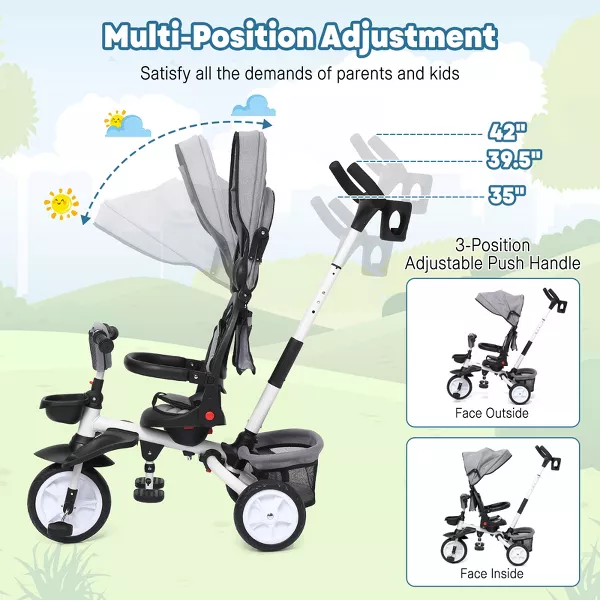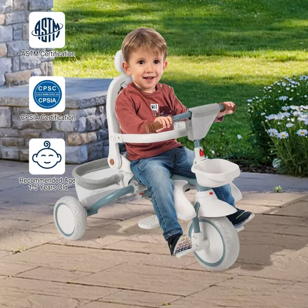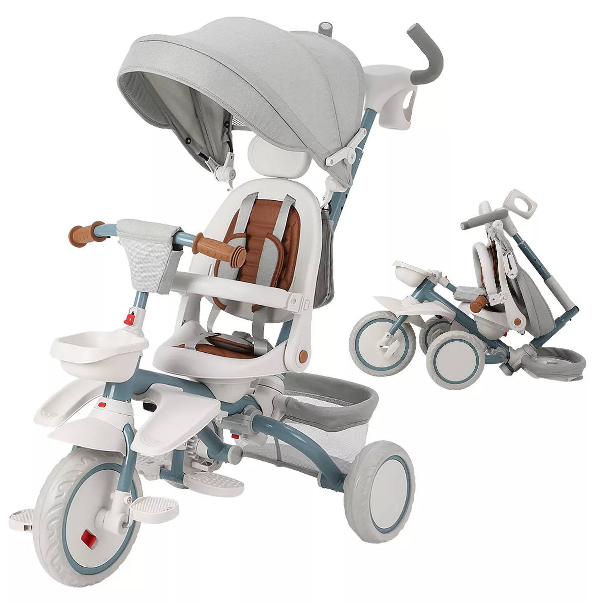 7 in 1 Folding Baby Tricycle, Toddler Tricycle Stroller for 1-5 Year Old, Kids Tricycl with Adjustable Push Handle, Storage Basket, Baby Trike with Safety Harness
