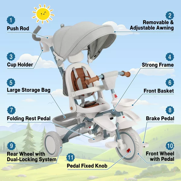 【Quick Folding & Lightweight Design for Easy Carrying】: Our tricycle has a fast folding design to maximize space utilization. Therefore, you can place the toddler tricycle in your trunk for traveling or store it with more convenience when not in use. And it also features lightweight for easy carrying.