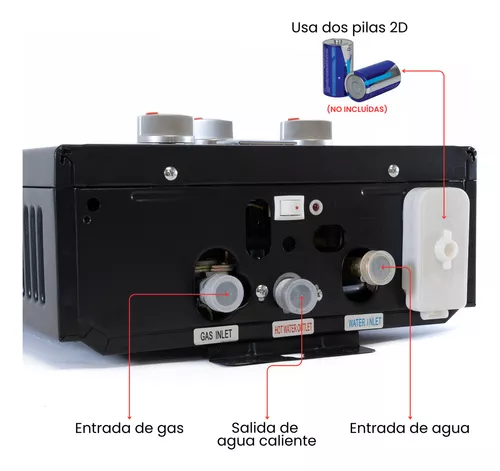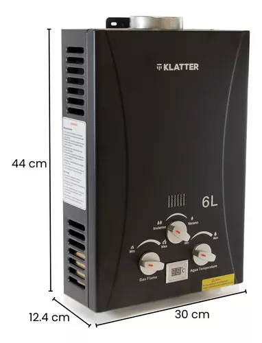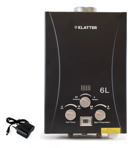 Calentador De Paso Instantáneo 6l Agua A Gas Glp Eliminador Color Negro