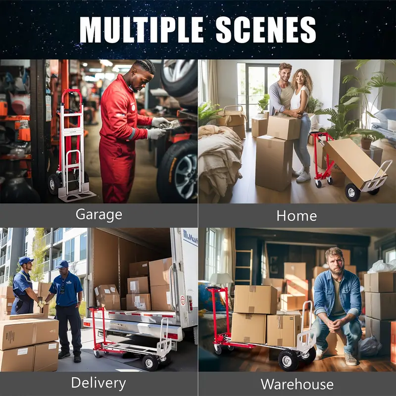 Carro industrial plegable de alta resistencia con capacidad de 1000 libras, diseño 3 en 1, con 4 ruedas, plataforma plegable, carretilla de mano de aluminio para mudanzas en almacenes, supermercados, jardines.