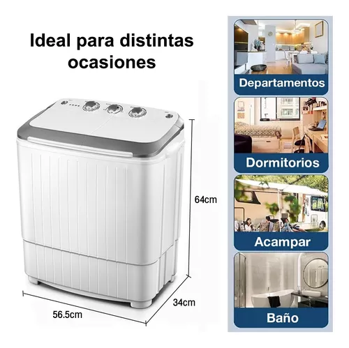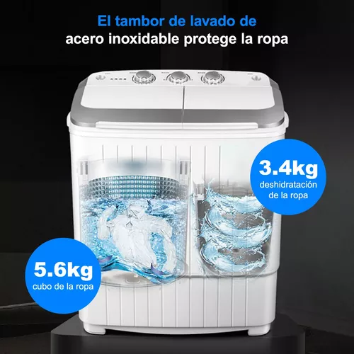 NOTA ESPECIAL: Como se puede ver en la imagen, esta lavadora es pequeña y compacta, adecuada para sólo 1 o 2 personas y puede lavar unas 6 cargas de ropa a la vez.