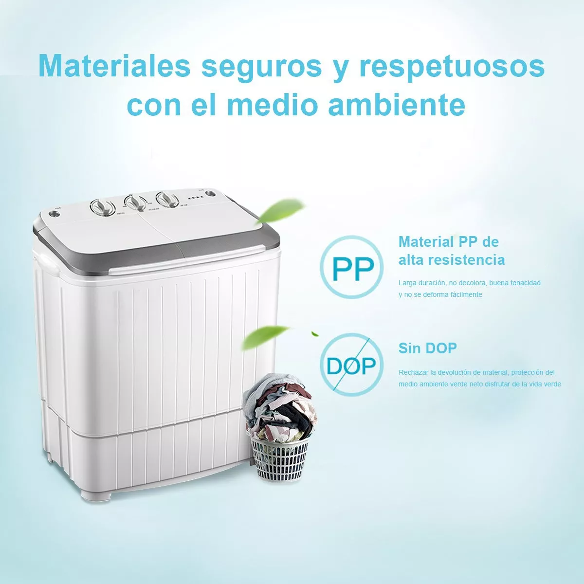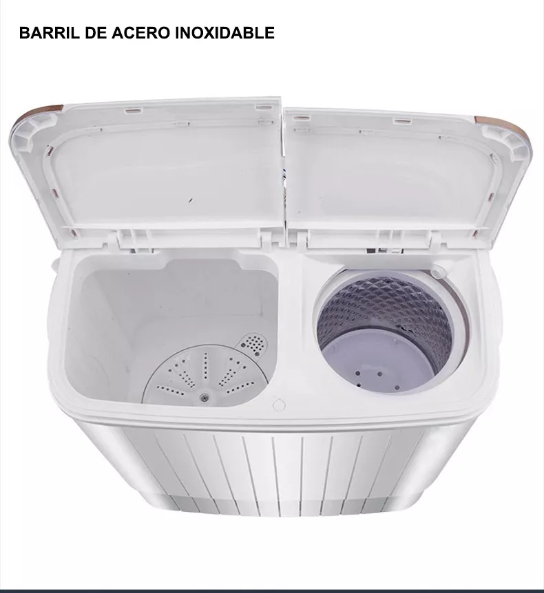 Diseño cómodo y sencillo ----- Presenta un diseño de doble tambor con 3 botones de control en el panel de mandos y un temporizador de lavado con 3 opciones: lavado, aclarado y centrifugado.