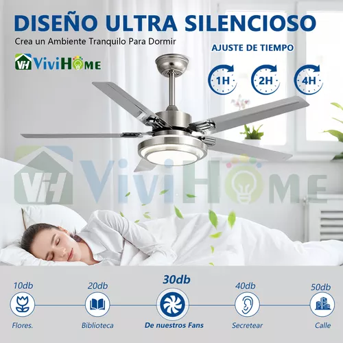 Motor silencioso: el ventilador con luz led produce el nivel de ruido inferior a 35 dB.