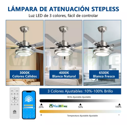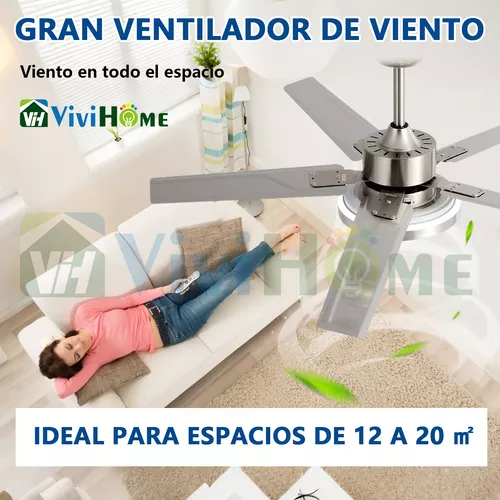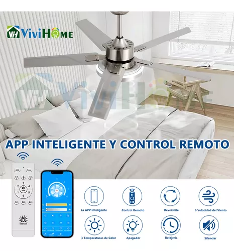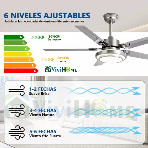 Caractersticas del productoEs turbo:NoIncluye control remoto:SColor De La Estructura:Plata/BlancoDimetro:48 "Material De Las Aspas:MealCantidad de velocidades:6Cantidad De Aspas:5Color De Las Aspas:Plata blancoFrecuencia:60 HzCaractersticas generalesMarcaVIVIHOME,MEGALUZLneaVentilador de techoModeloVIVIHOME-CF1083AVoltaje127VDimensionesAltura35 cmProfundidad122 cmAncho122 cmFuncionesCon funcin turboNoEspecificacionesTipo de ventiladorDe techoTipo de alimentacinCorriente elctricaCantidad de velocidades6Incluye control remotoSCaractersticas de la estructuraMaterial de la rejillaMetalCon aspas reversiblesSIluminacinCon luzSOtrosPeso6 kgNivel de ruido30 dBDescripcinEspecificacin- Voltaje: DC 85V/265V- Potencia: 88W- Velocidad del viento:6 engranajes- Temperatura del color:3 colores (3000k/4000k/6000k)- Control: Control Remoto Y APP- Tamao del producto: 48 Pulgadas, 122*35cm- Instrucciones de compra: Debido al lmite de tamao mximo del paquete de envo, se puede enviar un mximo de 2 piezas por pedido. Si necesita comprar ms de 2 piezas de luces de ventilador, compre varias veces.Gracias por su comprensin y cooperacin.Dimensiones del ventilador de techo: dimetro: 48 pulgadas; altura: 14 pulgadas/19 pulgadas opcional (de techo a parte inferior de la carcasa del ventilador, incluyendo barra de 5 pulgadas/8 pulgadas opcional); peso 17 libras.Motor silencioso: el ventilador con luz led produce el nivel de ruido inferior a 35 dB.Control remoto multifuncional: los ventiladores wika de iluminacin y techo con control remoto tienen control de velocidad y funcin de temporizacin. Volver a encender la luz ms de 7 segundos despus de apagar la luz, la temperatura de color ser la misma que la ltima vez.Luz LED: el ventilador de techo LED combina con la luz LED de 24 W. Pulsa el botn ON/OFF en el control remoto continuamente puede cambiar la temperatura de color de blanco fro (6000 K) a blanco clido (3000 K) a luz natural (4000 K).Funcin reversible: el ventilador de techo reversible te permite cambiar la direccin del ventilador de techo interior del flujo de aire hacia abajo en verano al flujo de aire hacia arriba en invierno, para recuperar el calor perdido del techo y reducir los costos de energa.Garanta del vendedor: 20 das
