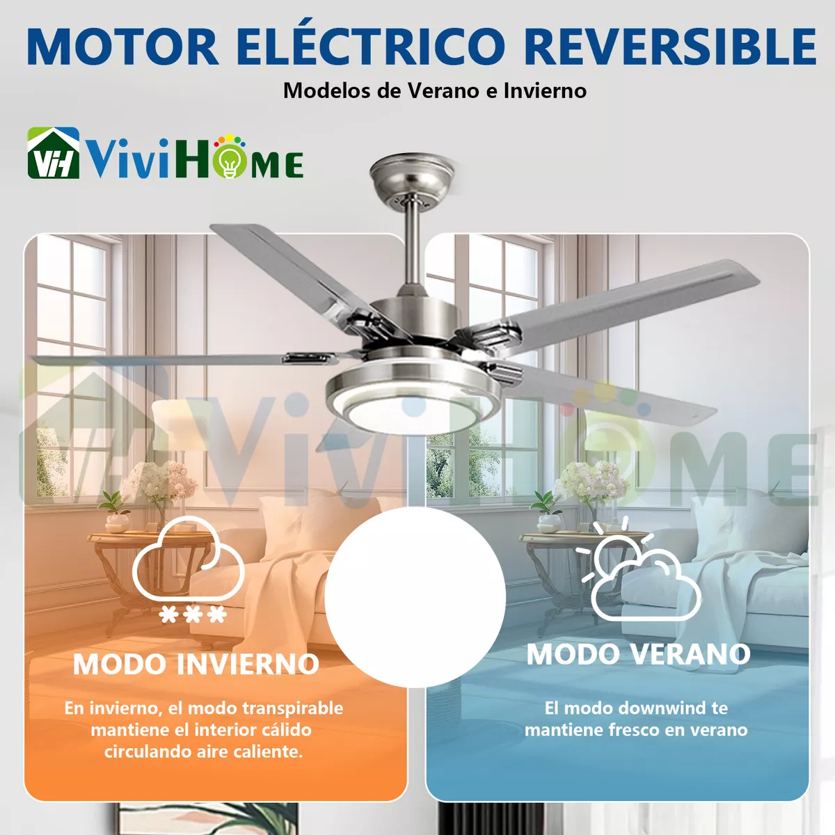 Función reversible: el ventilador de techo reversible te permite cambiar la dirección del ventilador de techo interior del flujo de aire hacia abajo en verano al flujo de aire hacia arriba en invierno, para recuperar el calor perdido del techo y reducir los costos de energía.