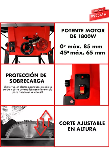Sierra de Banco Portátil Red V RV2541A - Potente Motor de 1800W, Alta Calidad y Facilidad de Uso