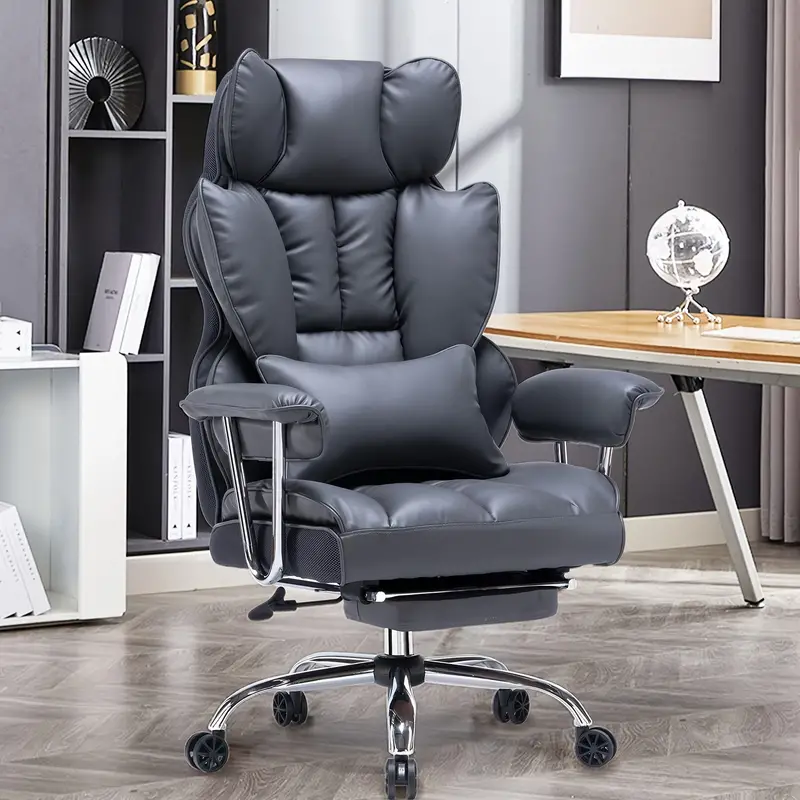 Silla de oficina Efomao Desk 400LBS, silla de oficina grande y alta, silla de ordenador de cuero PU, silla de oficina ejecutiva con reposapiés y soporte lumbar.
