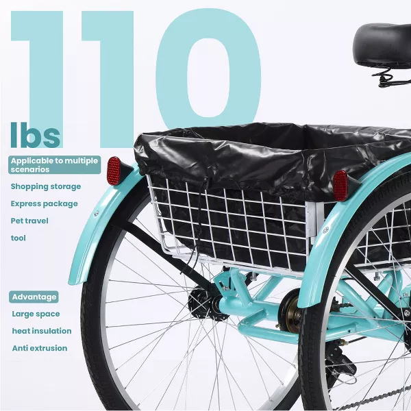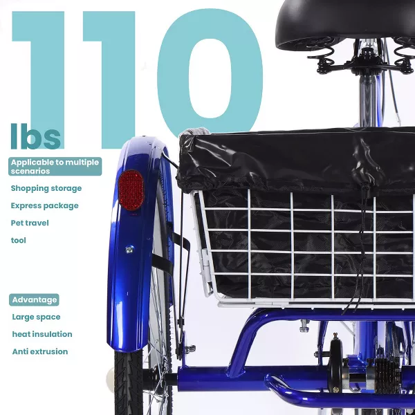 • [Large Rear Basket] The back basket can hold up to 110 pounds and can easily store groceries, carry essentials, and even bring your furry companions. The basket is equipped with a cloth bag to protect items from being squeezed by the net. Make shopping and leisurely cycling easy!