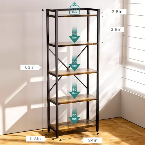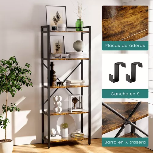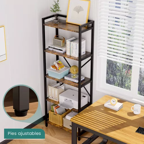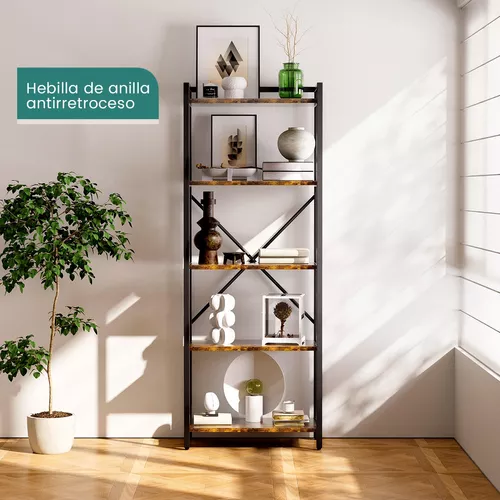 Amplíe su biblioteca personal, 5 capas anaqueles pueden exhibir libros, figuras de juguete, fotos, plantas y más, adecuadas para la sala de estar, el estudio, el dormitorio y la oficina, evite el desorden y agregue un toque de estilo industrial chic y estética clásica a su habitación, cree Ambiente acogedor en la habitación.