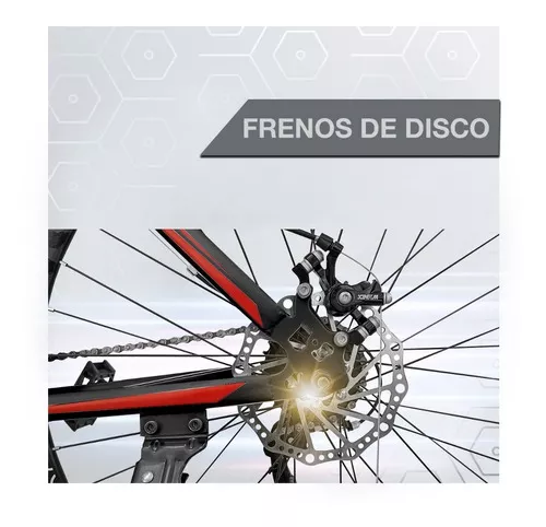 El sistema de freno incluye doble freno de disco. Los cambios Tipo Shimano de 21 velocidades con desviador trasero Shinemax, filial de Shimano TY21, aseguran control en diversas situaciones.