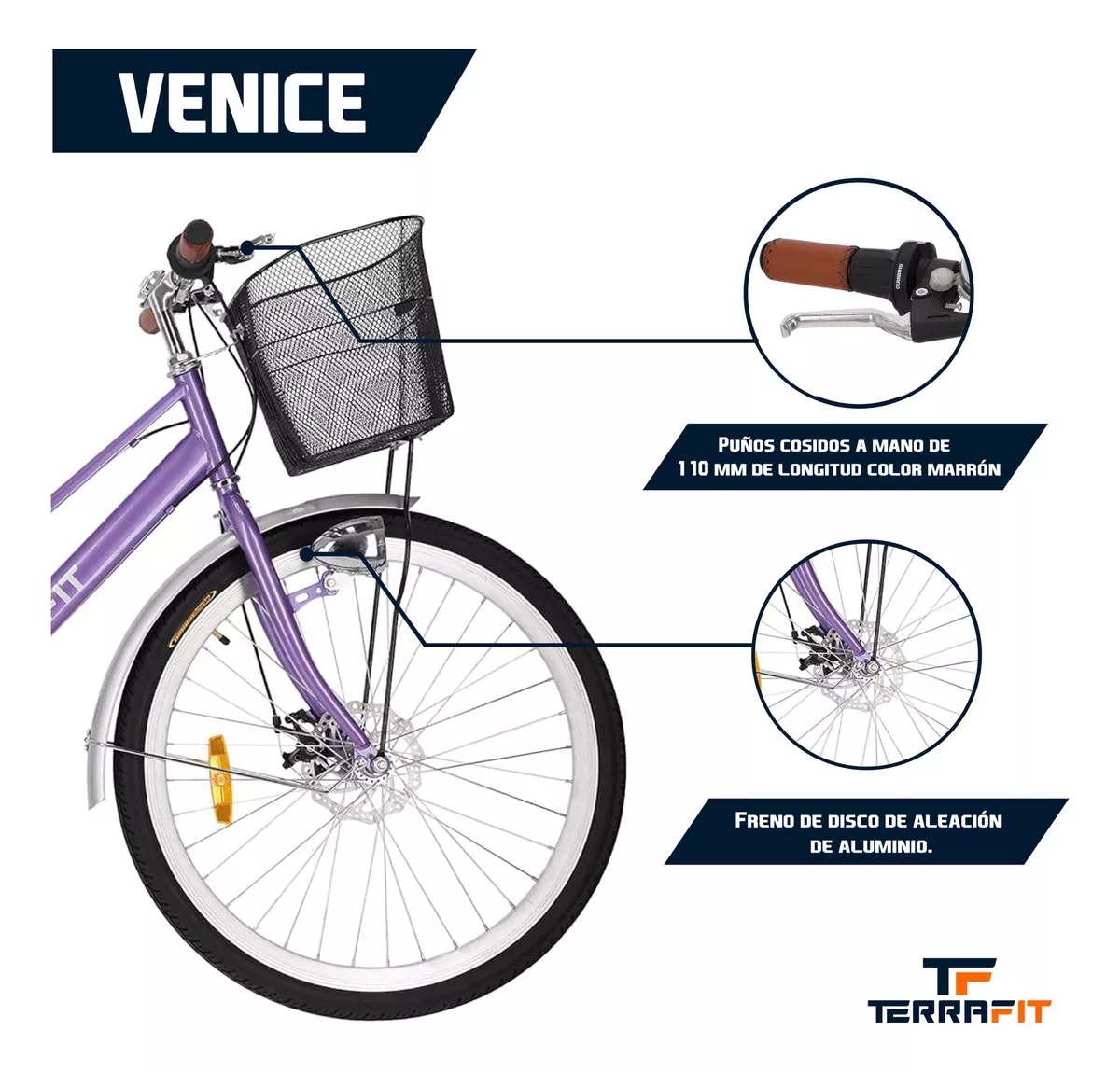 El marco de la Terrafit Venice está construido con materiales de alta calidad que ofrecen una estructura ligera pero resistente, garantizando una mayor durabilidad sin sacrificar la facilidad de manejo. Su diseño ergonómico ha sido meticulosamente pensado para proporcionar una postura de conducción cómoda, reduciendo la fatiga en trayectos largos y permitiéndote disfrutar de cada momento sobre dos ruedas.