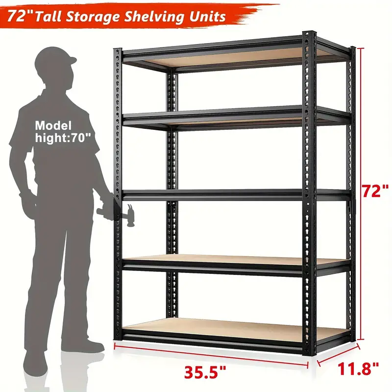 Estantería de garaje de 72", estantes de almacenamiento, estantes de garaje, estantería de almacenamiento de metal de 5 niveles, estantes de almacenamiento de garaje ajustables para despensa de almacén de artesanía, sótano 72''*35.5''*11.8''