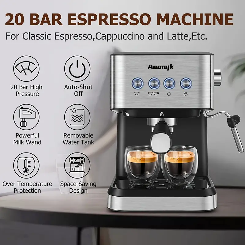 Máquina de café expreso de calentamiento rápido, con varilla espumadora de leche, perfecta para baristas domésticos y vehículos recreativos, presión de 20 bares para un   y sabroso detalles 1
